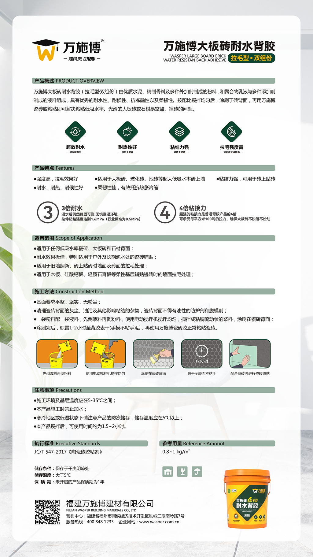 大板砖拉毛型耐水背胶